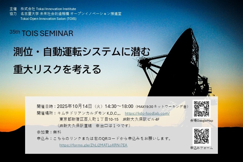 詳細・お申込みは、こちらのページ(Tokai Innovation Instituteページ)にお願いします。