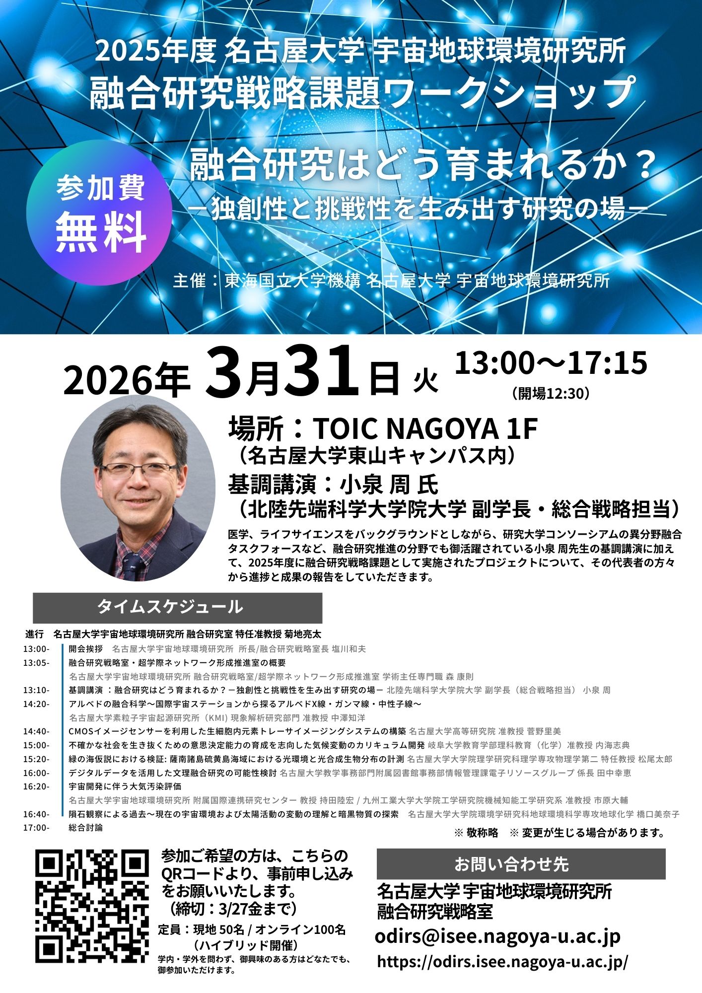 お問合せ先:名古屋大学 宇宙地球環境研究所 融合研究戦略室
